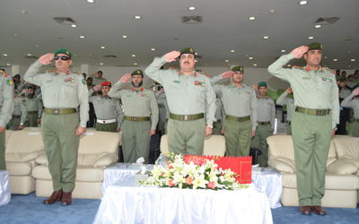 تحت رعاية سعادة وكيل الحرس الوطني الفريق ناصر عبدالله الدعي ، وحضور قائد التعليم العسكري اللواء الركن مهندس هاشم عبدالرزاق الرفاعي احتفل الحرس الوطني بتخريج دورة المستجدين الاغرار في معسكر الصمود.
