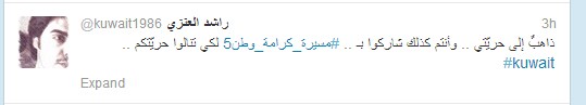 العنزي اعتبر الاشتراك في المسيرة ذهاباً إلى الحرية وقال: شاركوا في مسيرة كرامة وطن5 لكي تنالوا حريتكم.