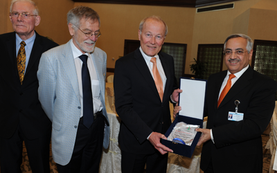 وفي ختام الحفل قدم الدكتور النفيسي الدروع التذكارية لجميع أعضاء الوفد.