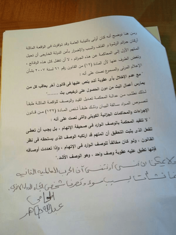 في القضية المرفوعة ضد الكاتب فؤاد الهاشم بتهمة الافتراء دون أدلة عن أموال قطرية تدفع لرموز المعارضة الكويتية مثل رئيس مجلس الامة السابق أحمد السعدون، ودعم مخطط الاخوان المسلمين لقلب نظام الحكم، ترافع اليوم المحامي القطري عبدالله أحمد طاهر مؤكدا أن الهاشم قال بالنص على قناة الصباح: “التدخل القطري سار سافر في الكويت.. ممكن نخلي رجال أعمال الكويت يرصدوا مبلغ وليكن 100 مليون دولار ونشتري بها جيش قطر… بعض الشيوخ في الكويت تم شرائهم من قبل قطر.. ممكن نشتري شيوخ قطر، وان هناك شيوخ في قطر يعانون من ضيق مالي وممكن أن نشتريهم”.