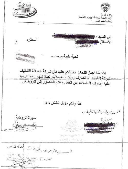 وقد أشار المصدر الى قيام مديرة المنطقة التعليمية باستصدار قرارات نقل جماعية لجميع موظفي القسم نقلا تأديبيا، ولا يزال التحقيق جاري في حيثيات الموضوع.