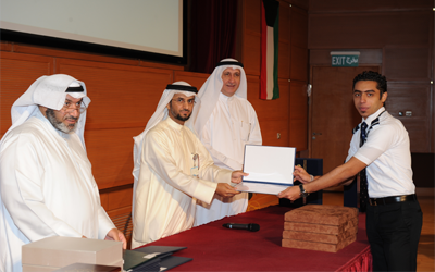 ثم كرم راعي الحفل م.حجرف الحجرف الطلبة المتفوقين والمشرف الفني للدورات الجمارك بالإدارة العامة للجمارك عبدالسلام عبدالعزيز الحسون ومدير ادارة الملاحة الجوية في الطيران المدني فوزي المرشود ومساعد مساح اول في الادارة العامة للنقل البحري سليمان الدعي ومساعد مدير المعهد الكابتن منذر الكندري .