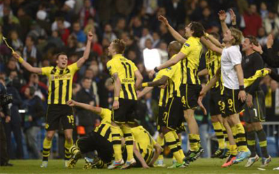 وتغلب دورتموند على الريال 4-1 في لقاء الذهاب بدورتموند يوم الأربعاء الماضي ولكن الريال كاد يقلب الطاولة على ضيفه الألماني أمس حيث سجل هدفين في آخر سبع دقائق من المباراة وكان بحاجة إلى هز الشباك مرة واحدة أخرى ليحجز بطاقة التأهل للنهائي على حساب دورتموند الذي حسم المواجهة لصالحه 4-3 بمجموع المباراتين.