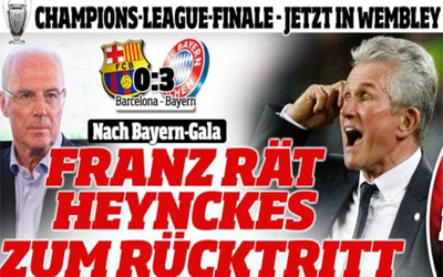 وذكرت صحيفة “بيلد” الألمانية “نعم ، نعم ، نعم ! نهائي القرن أصبح حقيقة” في إشارة إلى الفوز الكبير الذي حققه بايرن على برشلونة بثلاثة أهداف أمس الأربعاء في إياب المربع الذهبي لدوري الأبطال ليفوز بايرن 7-صفر على برشلونة في مجموع المباراتين بعدما انتهت مباراة الذهاب لصالحه برباعية نظيفة في ميونيخ.