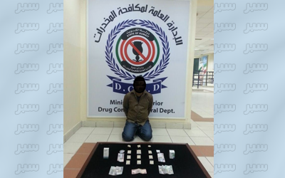 هذا وقد تمت إحالته والمضبوطات إلى نيابة المخدرات والخمور جهة الاختصاص .