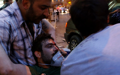 تصاعدت أعمدة الدخان من وسط الميدان ولم يعرف مصدرها بعد، واعتدى المتظاهرون على وسائل الإعلام التركية.