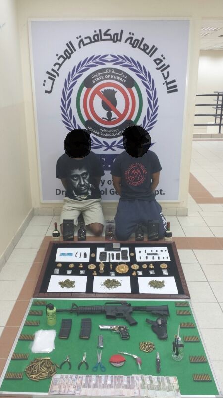 تمكن رجال الإدارة العامة لمكافحة المخدرات إدارة العمليات من إلقاء القبض على مواطنين بحوزتهما حشيش ومارجوانا وأيس و(2) سلاح ناري، بالإضافة إلى آثار رومانية مهربة.