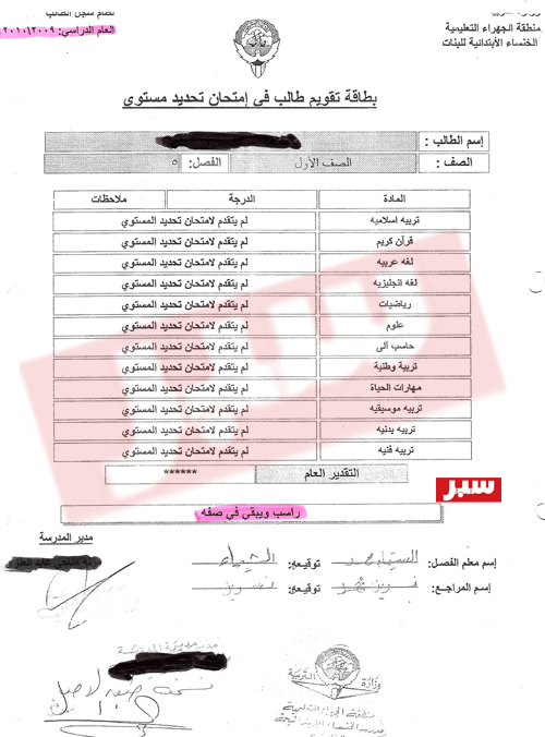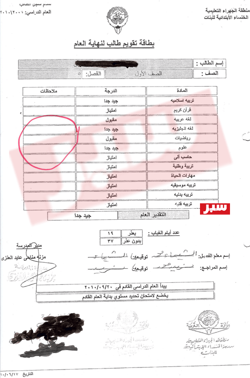 وعلمت ((سبر)) عن ارتكاب عملية تزوير، أبطالها أحد المسؤولين في تعليمية الجهراء، والذي حاول التستّر على خطأ إملائي وقع به أحد موظفيه في بطاقة تسجيل الدرجات لطالبة تابعة للمنطقة، وبدلًا من القيام بتصحيح الخطأ وإعادة الأمور إلى ميزانها وتدارك الخطأ، قام بارتكاب ما هو أكبر وأفضع منه وهو “التزوير”.