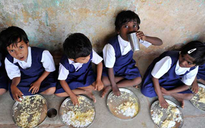 وقدمت المدرسة في منطقة تشابرا الوجبات المجانية بمقتضى برنامج وجبةالظهيرة وهو أكبر برنامج غذائي مدرسي في العالم يشارك فيه 120مليون طفل.