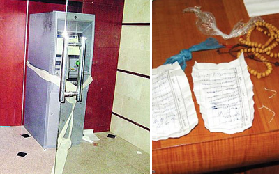 وتبين من المعاينة الاولية ان اللصوص المجهولين شرعوا في سرقة الماكينة من خلال ربطها بجبل حديدي ونزع الماكينة من مكانها من خلال سحبها بهذا الحبل الذي تم ربطه بمركبتهم، الا ان محاولتهم فشلت.
