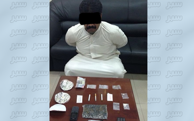 حدث ذلك أثناء تجوال إحدى دوريات شرطة نجدة محافظة الجهراء حيث توقفت لتقديم المساعدة لمركبة متوقفه بالطريق فلاذ شخص ممن كان فيها بالفرار، ووجد شخص آخر غير كويتي بداخلها بحاله غير طبيعيه، وعند تفتيشه احترازيا تبين أنه يحمل كيسين من مادة الشبو المخدرة وحبوب كبتي، نص كف حشيش، وأدوات تعاطي.