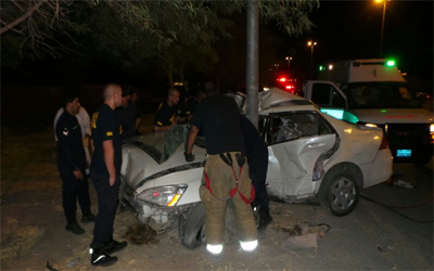 وقع الحادث إثر انحراف إحدى المركبتين لتستقر في عمود للإنارة على جانب الطريق.