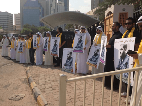 وفي الجانب الاخر تواجد عدد من المواطنين في “تجمع صامت” أمام قصر العدل للمطالبة بسرعة النظر بقضية المغرد حمد النقي وعدم تكرار تأجيلها بعد أن أجلت للمرة العاشرة، وحمل التجمع شعارات ورموز تعبيرية مدشنه بلوحات تحمل صور المتهم حمد النقي.