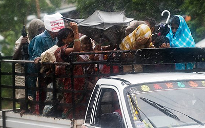 وكان هؤلاء الاشخاص يغادرون منازلهم حاملين اغراضهم في تدفق متواصل الى ملاجئ اعدت على عجل لايوائهم. ويعد هذا التدفق من اكبر عمليات النقل السكاني التي تنظم في الهند بحسب مسؤول في وكالة ادارة الكوارث.