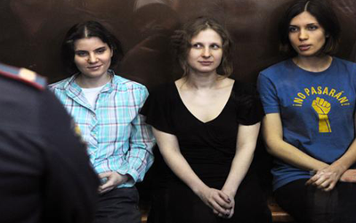 وأدينت ناديغدا تولوكونيكوفا واثنتان من أعضاء الفرقة بالشغب المدفوع بالكراهية الدينية بسبب احتجاج اقتحمن خلاله الكاتدرائية وتضرعن للعذراء لتخلص روسيا من بوتن.