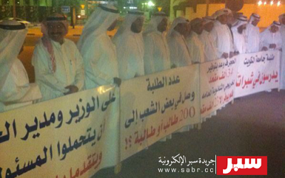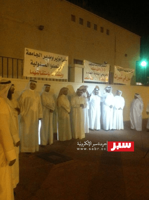 بحضور قرابة 40 دكتورًا.. بمختلف التخصصات الأكاديمية من جامعات معترف بها من التعليم العالي، نظم تجمع حملة الدكتوراه الكويتيين غير المعينين في المؤسسات التعليمية اعتصامهم الرابع بشأن أزمة القبول في الجامعة والتطبيقي، بجانب مجلس الوزراء بقصر السيف، في حضول د.سلطان الشريدة المنسق العام، ود.علي الشمالي عضو المكتب التنفيذي، ود.منصور بروسلي من اللجنة الاعلامية للتجمع، ود.أحمد السلطان اللجنة التنفيذية للتجمع.