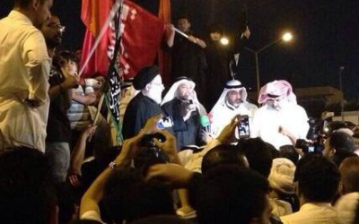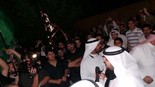(تحديث..4) الجموع المحتشدة من امام مسجد مقامس تغضب من كلام النائب خليل ابل وتنادي ” استجواب الاذينة اولى من استجوابك لرولا دشتي”.