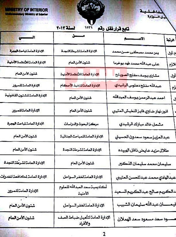 آخر الأخبار جرائم وقضايا “الجمارك” تضبط 29 ألف علبة مشروبات كحولية قادمة من دولة آسيوية في ميناء الشويخ 9 يونيو، 2024 محليات ممثلة عن دولة الكويت الطبيبة الكويتية أسماء الكندري تشارك في المؤتمر العالمي للمناظير في إيطاليا 8 يونيو، 2024 محليات “الصحة”: اكتمال وصول فريق الخدمات الطبية ببعثة الحج الكويتية لمكة المكرمة 8 يونيو، 2024 محليات “الصحة” تحدد 8 مراكز للصحة المدرسية لاستقبال الطلبة المبتعثين 8 يونيو، 2024 عربي وعالمي “الصحة العالمية”: تسجيل أول وفاة لشخص مصاب بـ«أنفلونزا الطيور» 7 يونيو، 2024 محليات تدوير واسع بين ضباط “الداخلية” محرر المحليات5 ديسمبر، 2013أضف تعليق1 دقائق أصدر وزير الداخلية اليوم قراراً قضى بإجراء تدوير بين عدد من ضباط وزارة الداخلية بدءاً من رتبة ملازم أول.. وشمل القرار نقل الضباط بين مختلف الإدارات والقطاعات والمراكز التابعة للوزارة حسب ما هو موضح ادناه: من الممكن أن يعجبك محليات ممثلة عن دولة الكويت الطبيبة الكويتية أسماء الكندري تشارك في المؤتمر العالمي للمناظير في إيطاليا محليات “الصحة”: اكتمال وصول فريق الخدمات الطبية ببعثة الحج الكويتية لمكة المكرمة محليات “الصحة” تحدد 8 مراكز للصحة المدرسية لاستقبال الطلبة المبتعثين محليات العجمي : السماح بالتخييم في “جال الزور” مدمر للبيئة محليات وزير الصحة : تشكيل لجنة فنية لإعداد دراسة إنشاء مركز متخصص في “التصلب العصبي المتعدد” محليات مجلس الوزراء يوافق على محضري “لجنة تحقيق الجنسية” أضف تعليق أضغط هنا لإضافة تعليق إلغاء الردالتعليقالاسم البريد الإلكتروني الموقع الإلكتروني Δ هذا الموقع يستخدم خدمة أكيسميت للتقليل من البريد المزعجة. اعرف المزيد عن كيفية التعامل مع بيانات التعليقات الخاصة بك processed.
