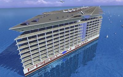 صممت شركة بولاية فلوريدا الأميركية مشروعاً لبناء مدينة عائمة تضم عشرات الآلاف من السكان الذين يمكنهم جوب العالم دون التخلي عن أنشطة حياتهم العادية مثل العمل والدراسة والشراء.
