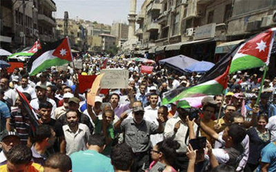 وخلال وقفة احتجاجية نظمتها “اللجنة الشعبية الأردنية للدفاع عن الأقصى والمقدسات”، أمام مجمع النقابات المهنية في عمان، رفضًا لزيارة وزير الخارجية الأمريكية جون كيري للمنطقة والأردن، ندد المشاركون بمفاوضات السلام التى تهدف لـ”لتقسيم فلسطين، وإلغاء حق العودة للاجئين، واستيلاء العدو الصهيوني على الحدود والقدس”، بحسب قولهم.
