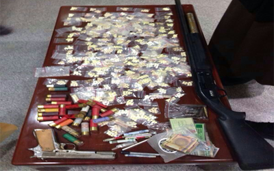 تمكن رجال الادارة العامة لشرطة النجدة من إلقاء القبض على غير محدد الجنسية وبحوزته 2970 حبة كبتي و22 نصف حبة منصفة وكيس شبو بالإضافة الى بندقية شوزن و55 طلقة, ومسدس 9 مم و4 طلقات للمسدس و 13 طلقة ام 16.