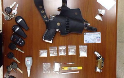وبتفتيشه احترازيًا، وتفتيش السيارة تم العثور على 5 أكياس من مادة الشبو المخدرة، بالإضافة إلى سلاح ناري جاهز للاستعمال، وبجانبه أدوات التعاطي.