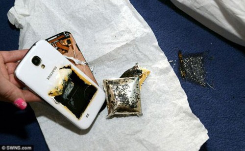 استيقظت كينت هولي هيويت (25 عاما) على صوت ازيز ورائحة حريق لتفاجأ بهاتفها Samsung Galaxy S4 وهو يحترق وقالت إنها وجدت بطارية الهاتف منخفضة وقامت بتوصيله لشحنه ولكنها بعد 50 دقيقة فقط استيقظت وسمعت ازيزا و أيضاً شمت رائحة الحريق لتنظر إلى أسفل وتجد سامسونج جالاكسي S4 يحترق فوق السجاد.