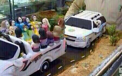 وكان عددٌ من نشطاء مواقع التواصل الاجتماعي، تناقلوا صورة لـ”كيكة” تم إعدادها على شكل سيارة لهيئة الأمر بالمعروف والنهي عن المنكر تسير خلف سيارة مكشوفة “وانيت” تقودها امرأة وتحمل معها عدداً كبيراً من النسوة، وهو ما اعتبره المغردون إساءة صريحة لرجال الهيئة.