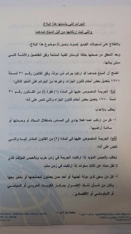 طالب المحامي “فلاح الحجرف” النائب العام بسرعة استدعاء الشيخ أحمد الفهد للاستماع لأقواله عن بلاغه المقدم اليوم.