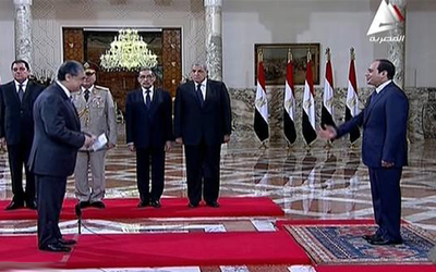 أدت الحكومة المصرية الجديدة برئاسة إبراهيم محلب اليمين القانونية، الثلاثاء، أمام الرئيس عبد الفتاح السيسي الذي نصب الأسبوع الماضي في القاهرة ونقلها التلفزيون المصري من داخل القصر الرئاسي.