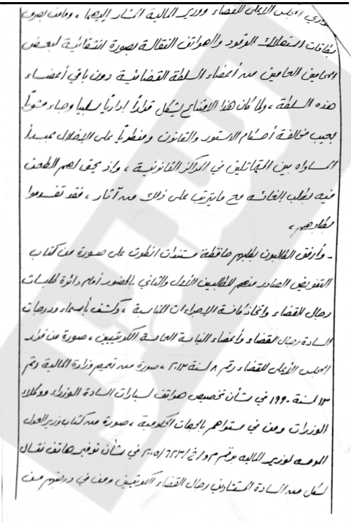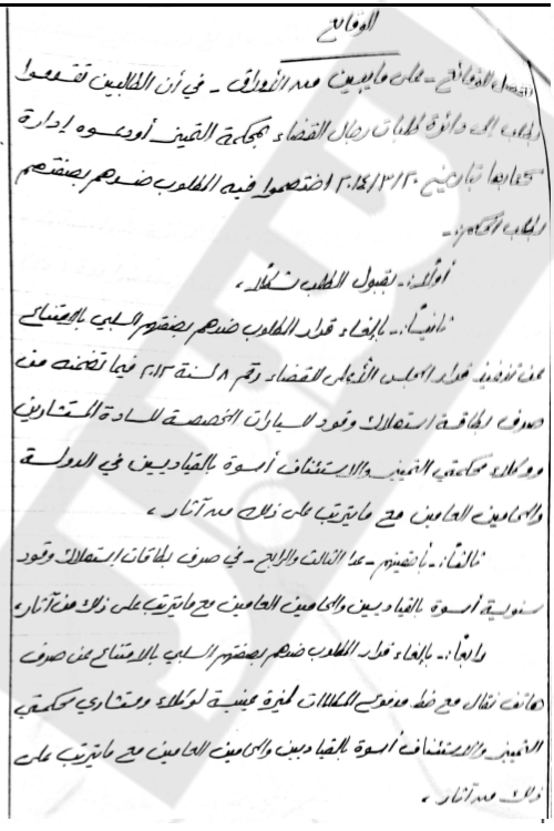 تقدم 45 مستشارًا في محكمتي التمييز والاستئناف بطعنين أمام دائرة التمييز “مطالبات رجال القضاء” والتي تستهدف أن تكون توصيات وقرارات مجلس القضاء ملزمة بالمخالفة للمواد 17 و 18 من قانون تنظيم القضاء.