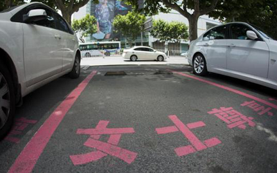 خصص أحد مراكز التسوق في الصين مواقف لسيارات النساء، يزيد عرضها 30 سنتيمترا عن تلك المخصصة للرجال، كما أنها محددة باللون الزهري، المفضل لدى كثير من النساء.