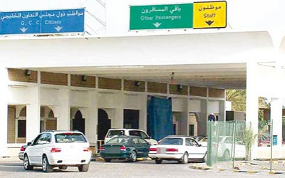 اقتيد موظف في منفذ النويصيب ومواطنة الي نيابة الاحمدي بعد فشل جهود الموظف في تهريب السيدة الممنوعة من السفر.