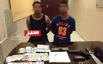 وبحسب مصدر أمني فإن دورية أمن تعاملت مع بلاغ يفيد بتعرض آسيوي للسلب في الجليب ورصدت الدورية المركبة المستخدمة وضبط سوري فيما فر شريكه إلى جهة غير معلومة وضبط لاحقا واعترفا عن استهدافها الوافدين اذ يزعمان أنهما من رجال الامن ويسلبون الوافدين ما بحوزتهم من هواتف ومبالغ مالية وتعرف اخر المجني عليهم وهو الآسيوي علي المتهمين في طوابير عرض قانونية.