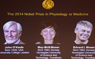 وقالت جمعية نوبل في بيان صحفي صدر في ستوكهولم إنها قررت منح العالم الأمريكي جون أوكيف والعالمة النرويجية ماي بريت مويزر وزوجها إدفارد مويزر جائزة الطب لعام 2014 تقديرا لاكتشافاتهم الخاصة بالخلايا المسؤولة عن نظام تحديد المواقع داخل الدماغ. وأضافت الجمعية أن الاكتشافات حلت مشكلة تشغل الفلاسفة والعلماء منذ قرون وتتعلق بكيفية رسم المخ خريطة للفضاء المحيط وكيفية التنقل عبر بيئة مركبة.