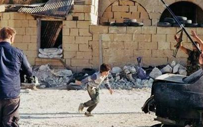 وفي التسجيل يظهر طفل وهو يتحدى رصاص القناصة ثم يظهر وكانه يصاب بينما يهرع لمساعدة طفلة مختبئة وراء سيارة مشتعلة في مكان يبدو انه في سوريا.