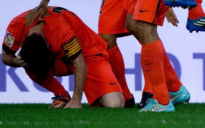 ألقى أحد مشجعي فالنسيا زجاجة مياه أثناء احتفالات لاعبي برشلونة بهدف الفوز القاتل على “الخفافيش”، لتصيب رأس نجم الفريق الكتالوني ليونيل ميسي، مما دفع فالنسيا للاعتذار رسميا.