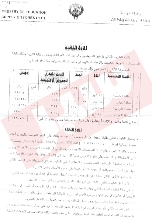 ومنّا في ((سبر)) إلى معالي وزير التربية للكشف عن جميع العقود السابقة والحالية في تعليمية الجهراء وباقي المناطق التعليمية والوقوف على حقيقة تنفيذها من عدمه لمعرفة مصير الملايين التي صرفت من ميزانية التربية.