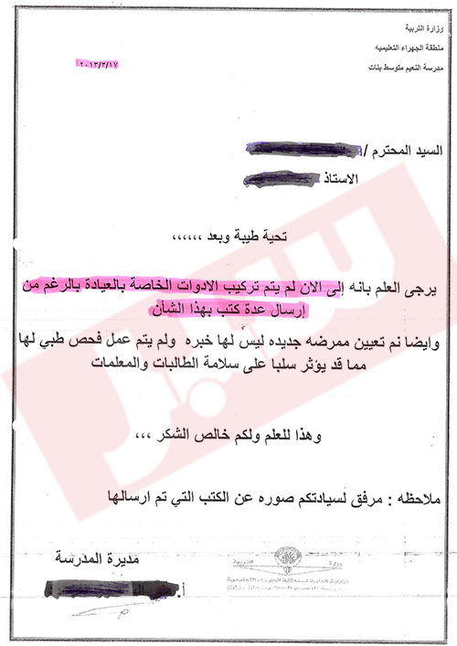 حيث كشفت تلك الحادثة عدم وجود عيادة صحية لدى المدرسة ولا أجهزة طبية أو ممرضين يعملون بها في حال وقوع إصابة او تعرض أحد الطلبة لظرف طارئ ومفاجئ، على الرغم من وجود العديد من العقود الخاصة بتلك الخدمات واستلام الشركات كامل مستحقاتها المالية، ومع ذلك نفاجأ بين فترة وأخرى بقصور وتراخي في تنفيذ شروط تلك المناقصات أو الحرص على توفير المستلزمات التي صرف عليها الملايين من الدنانير لأجلها.