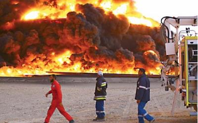 إلى ذلك، اعرب الناطق باسم المؤسسة الوطنية الليبية للنفط محمد الحراري في اتصال مع صحيفة «الحياة» عن خشيته من «امتداد النيران إلى الخزانات الأخرى نظراً لاستحالة الدخول لإخماد الحريق، مثلما حدث منذ أسبوع في أحد الخزانات، عندما تمكن رجال الإطفاء من الدخول إلى الميناء بعد فترة وجيزة من وقف الاشتباكات»، مشيراً إلى أن إمكانات السلامة المتوافرة لدى الشركات الليبية «الواحة، والهروج، وراس لانوف» الموجودة بالمنطقة والمتعاونة في ما بينها، «تستطيع القيام بالمهمة إذا توقف إطلاق النار». وأضاف الحراري أن «كميات تصدير النفط الليبي لا تتجاوز 352 ألف برميل يومياً فقط حيث يتم تصديره من موانئ البريقة وسط البلاد والحريقة في طبرق، ومليته غرب العاصمة، في حين أن ميناء السدرة يُعدّ أكبر موانئ تصدير النفط الليبي إذ تبلغ قدرته على التصدير 500 ألف برميل يومياً».