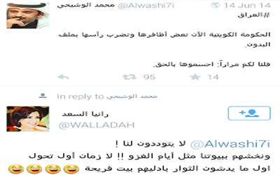 ويذكر أن “الوشيحي” كتب على حسابه بـ”تويتر”: “الحكومة الكويتية الآن تعض أظافرها وتضرب رأسها بملف البدون، قلنا مرارًا: احسموها بالحق”، فيما كان رد “رانيا”: “لأول تحوّل أول ما يدشون الثوار بأدليهم على بيت فريحة.”