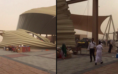 يذكر أن المواطن قام بتسجيل مقطع فيديو في قرية الشيخ صباح الأحمد التراثية لحظة سقوط المظلات التي لم تصمد بسبب الرياح في القرية، مما اثار حالة من الخوف والفزع في نفوس المواطنين والمقيمين المتواجدين بالحدث، خوفاً من وجود اشخاص تحت المظلات المتهدمة.