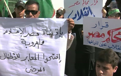 وقال القيادي في حركة حماس مشير المصري -في كلمة له على هامش المسيرة- إن “حكم محكمة الأمور المستعجلة المصرية يمثل انقلابا على التاريخ”، وهو “يسيء إلى مصر وينال من دورها القومي”.