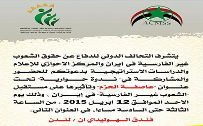 وستتناول الندوة تأثير “عاصفة الحزم” على مستقبل الشعوب غير الفارسية في إيران، وذلك يوم الأحد المقبل.