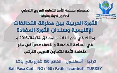 آخر الأخبار جرائم وقضايا “الجمارك” تضبط 29 ألف علبة مشروبات كحولية قادمة من دولة آسيوية في ميناء الشويخ 9 يونيو، 2024 محليات ممثلة عن دولة الكويت الطبيبة الكويتية أسماء الكندري تشارك في المؤتمر العالمي للمناظير في إيطاليا 8 يونيو، 2024 محليات “الصحة”: اكتمال وصول فريق الخدمات الطبية ببعثة الحج الكويتية لمكة المكرمة 8 يونيو، 2024 محليات “الصحة” تحدد 8 مراكز للصحة المدرسية لاستقبال الطلبة المبتعثين 8 يونيو، 2024 عربي وعالمي “الصحة العالمية”: تسجيل أول وفاة لشخص مصاب بـ«أنفلونزا الطيور» 7 يونيو، 2024 عربي وعالمي منظمة الأمة تقيم ندوة “الثورة العربية” في تركيا سبر - المحرر الدولي والعربي13 أبريل، 2015أضف تعليق1 دقائق وجهت منظمة الأمة للتعاون العربي التركي الدعوة لحضور ندوتها تحت عنوان “الثورة العربية بينط مطرقة التحالفات الإقليمية وسندان الثورة المضادة”. وستقام الندوة غدًا الثلاثاء في الساعة الخامسة والنصف عصرًا في مقر المنظمة في تركيا. من الممكن أن يعجبك عربي وعالمي “الصحة العالمية”: تسجيل أول وفاة لشخص مصاب بـ«أنفلونزا الطيور» عربي وعالمي السعودية تعلن غدا الجمعة غرة شهر ذي الحجة والوقوف بعرفة يوم 15 يونيو الجاري عربي وعالمي السعودية: وصول مليون و200 ألف حاج إلى المملكة حتى اليوم الخميس عربي وعالمي ما تأثير إدانة ترامب على فرصه بالفوز بانتخابات الرئاسة المُقبلة؟ عربي وعالمي السعودية تعلن تعيين سفير لها لدى سوريا عربي وعالمي المرشد الأعلى في إيران معلقا على حادث مروحية الرئيس: لن يحصل أي خلل في إدارة شؤون البلد أضف تعليق أضغط هنا لإضافة تعليق إلغاء الردالتعليقالاسم البريد الإلكتروني الموقع الإلكتروني Δ هذا الموقع يستخدم خدمة أكيسميت للتقليل من البريد المزعجة. اعرف المزيد عن كيفية التعامل مع بيانات التعليقات الخاصة بك processed.