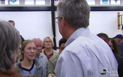 واجهت طالبة أمريكية في ولاية نيفادا، جيب بوش، مرشح الانتخابات الرئاسية القادمة في 2016 وحاكم ولاية فلوريدا السابق وشقيق الرئيس الأسبق جورج بوش، قائلة له “أخوك – في إشارة إلى جورج بوش – هو من أسس تنظيم الدولة الإسلامية”.