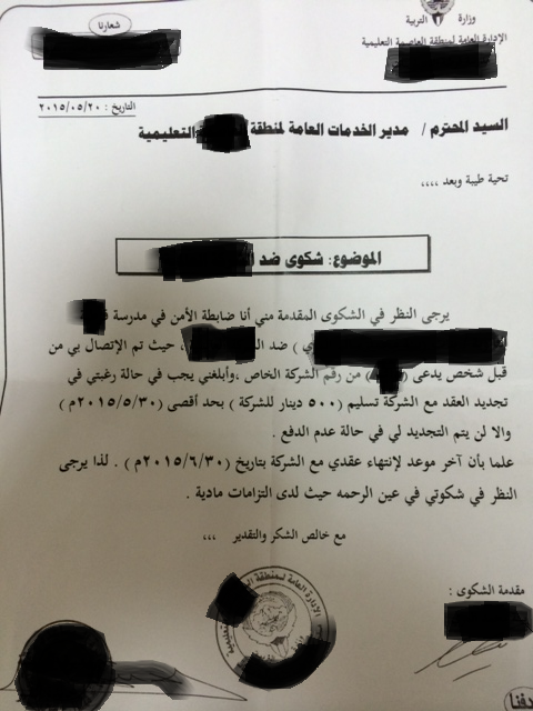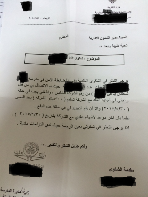 ومنا في سبر الى السيد وزير التربية بسبب روتين التعاقد وبسبب تراخي المسئولين في ادارة الخدمات ، أمنت بعض تلك الشركات من العقوبة ولم تعد تخشى من هيبة القانون طائل ، الى أن وصل بها الحال الى ابتزاز العاملين في أرزاقهم وإجبارهم على تقديم القرابين والولاءات ، التاريخ لا يرحم عندما يقال في عهدك ظلمت الكويتيات وأجبرن على دفع الرشاوى لضمان وظيفتهن .