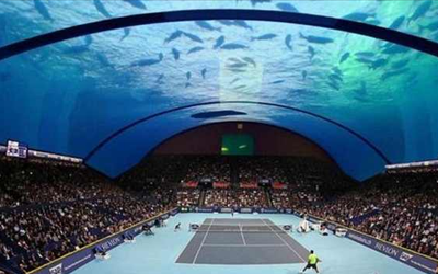 قالت صحيفة «بيزنس إنسايدر» إنه ليس غريباً على إمارة دبي التي أنشأت ملعباً فوق فندق برج العرب الشهير في مدينة دبي على ارتفاع 1000 قدم عام 2005 لتعزيز بطولة دبي للتنس، أن تتجه لبناء أول ملعب من نوعة يتم إنشاؤه تحت الماء.