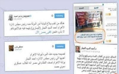 وسخر الكاتب الصحفي ورئيس تحرير مجلة “وجهات نظر” أيمن الصياد، من اتهام “النجار بالأخونة” بعد تكرار هذا الخطأ، حيث كتب- في تغريدة له على تويتر- “هناك من تقدم ببلاغ لنيابة أمن الدولة ضد رئيس مجلس إدارة الأهرام أحمد السيد النجار (اليساري) يتهمه فيه بالأخونة، لا بأس، فنحن في مصر الآن”.