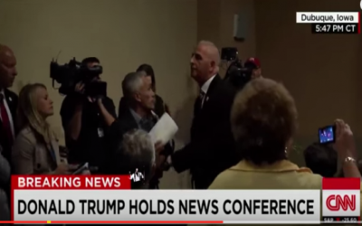 وبّخ المرشح للانتخابات التمهيدية للحزب الجمهوري دونالد ترامب الصحافي الاميركي جورج المكسيكي الاصل راموس من شبكة “يونيفيجين” خلال مؤتمر صحافي في ايوا، وطلب من مرافقيه اخراجه من القاعة.